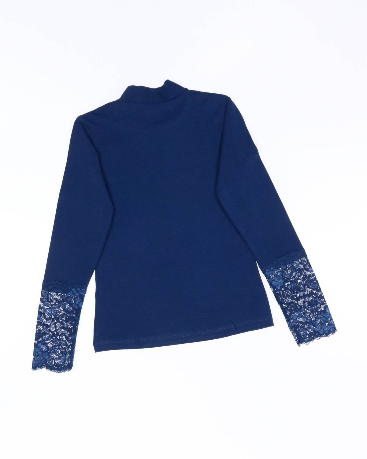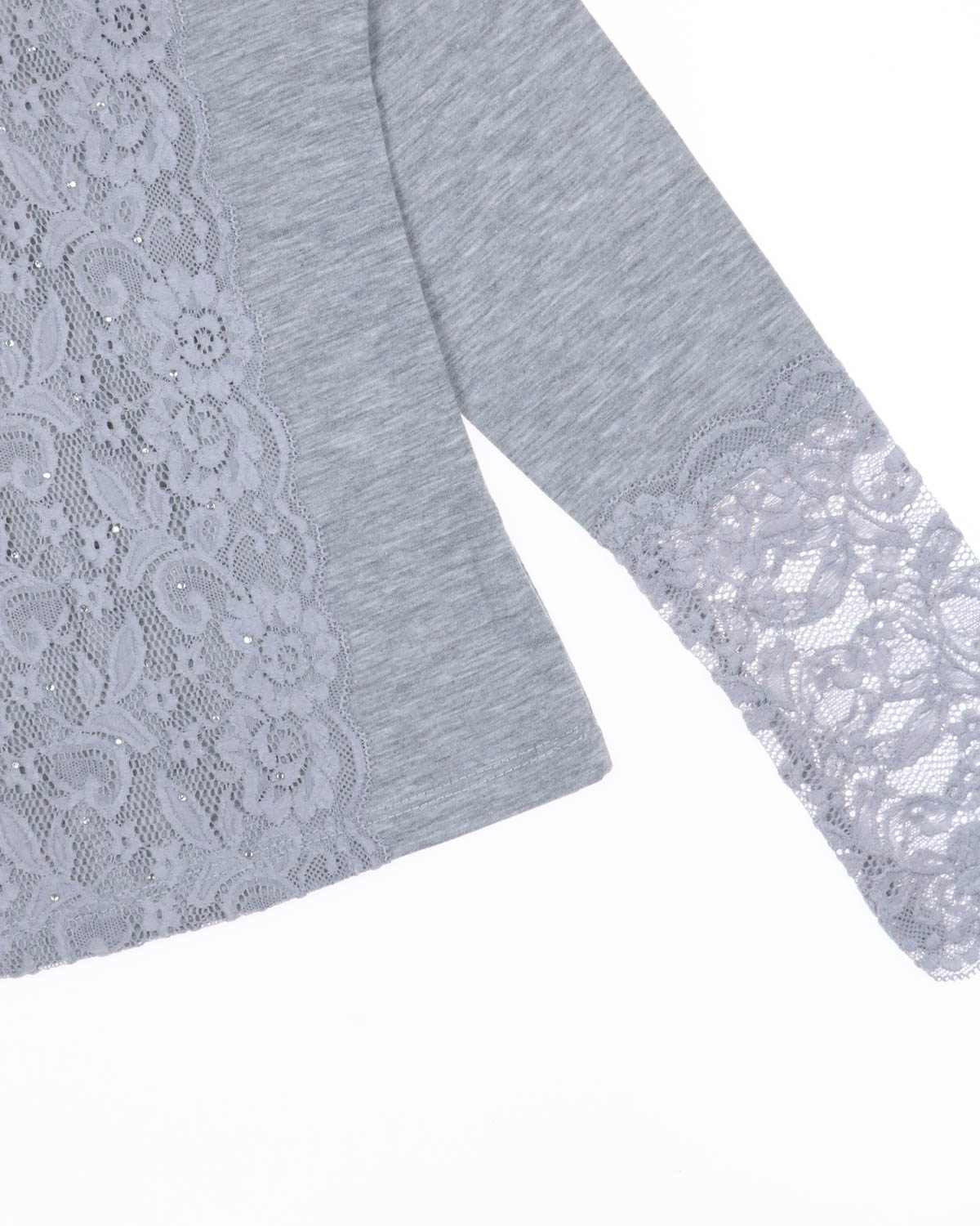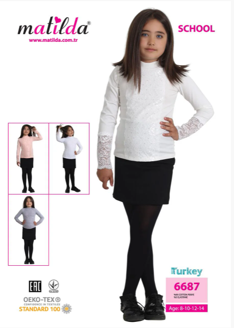 Трикотажная блузка для школы выполнена из хлопка с добавлением эластана. Рукава и перед блузки дополнен  красивым гипюром.