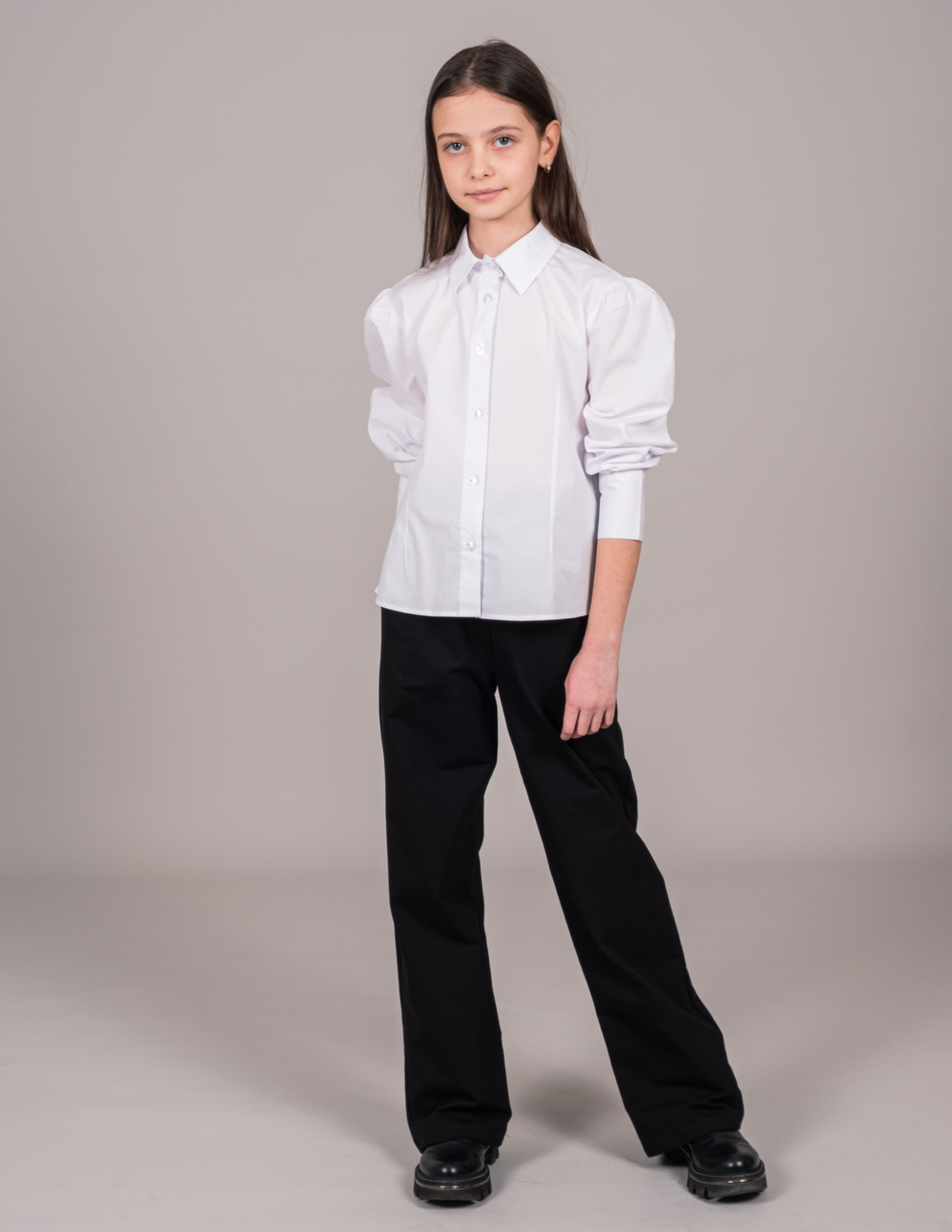 Белая блузка-рубашка с отложным воротничком - это классический вариант для девичьей школьной формы и торжественных мероприятий. Длинные рукава на манжетах с пуговицами. Воротник отложной.  Блузка изготовлена из тонкого полотна на хлопковой основе, очень приятного телу. Она хорошо держит форму при активной носке и не теряет ее после многократных стирок. В такой милой блузке вашему ребенку будет очень комфортно на уроках в школе и торжественных мероприятиях.