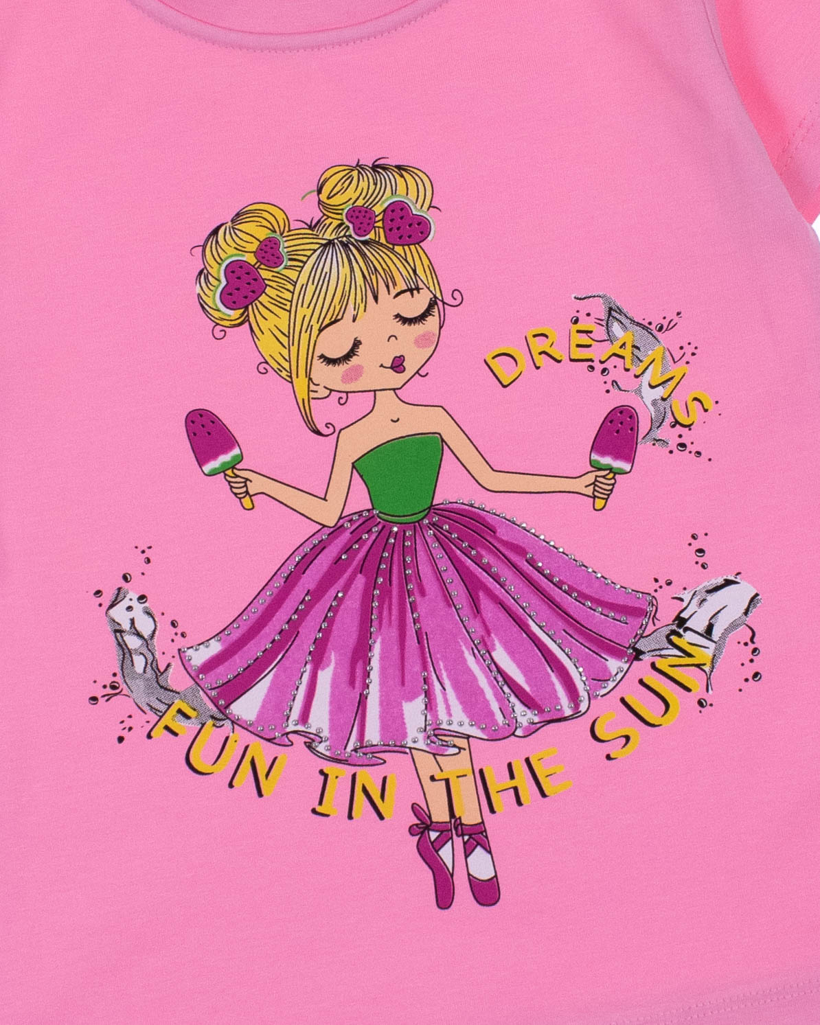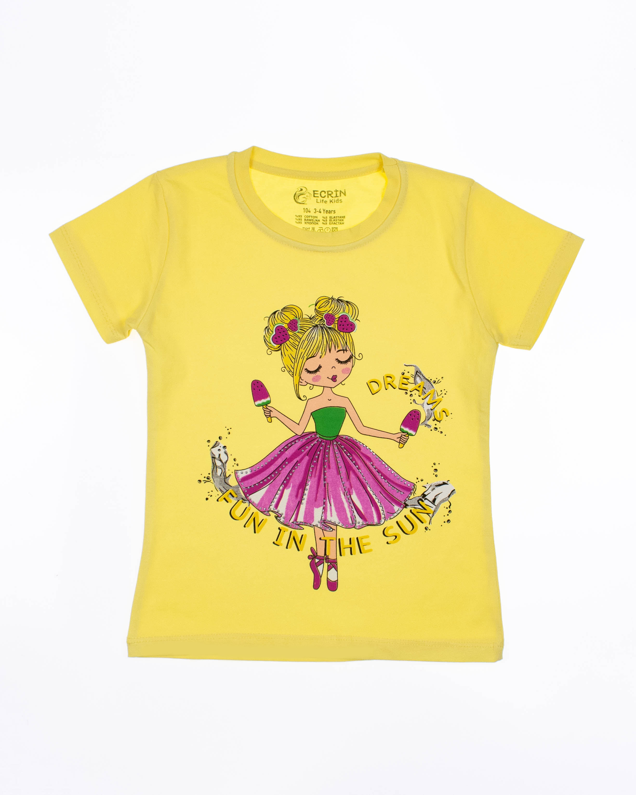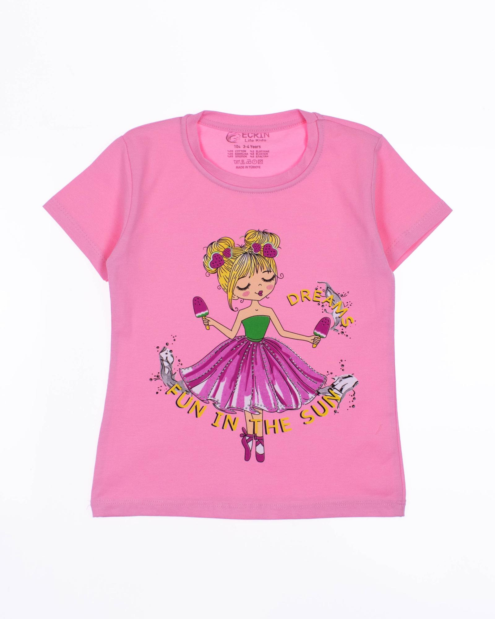 Футболка ECRIN  для девочки оптом, производства Турция. Модель приталенного силуэта с короткими рукавами  и милым принтом.
