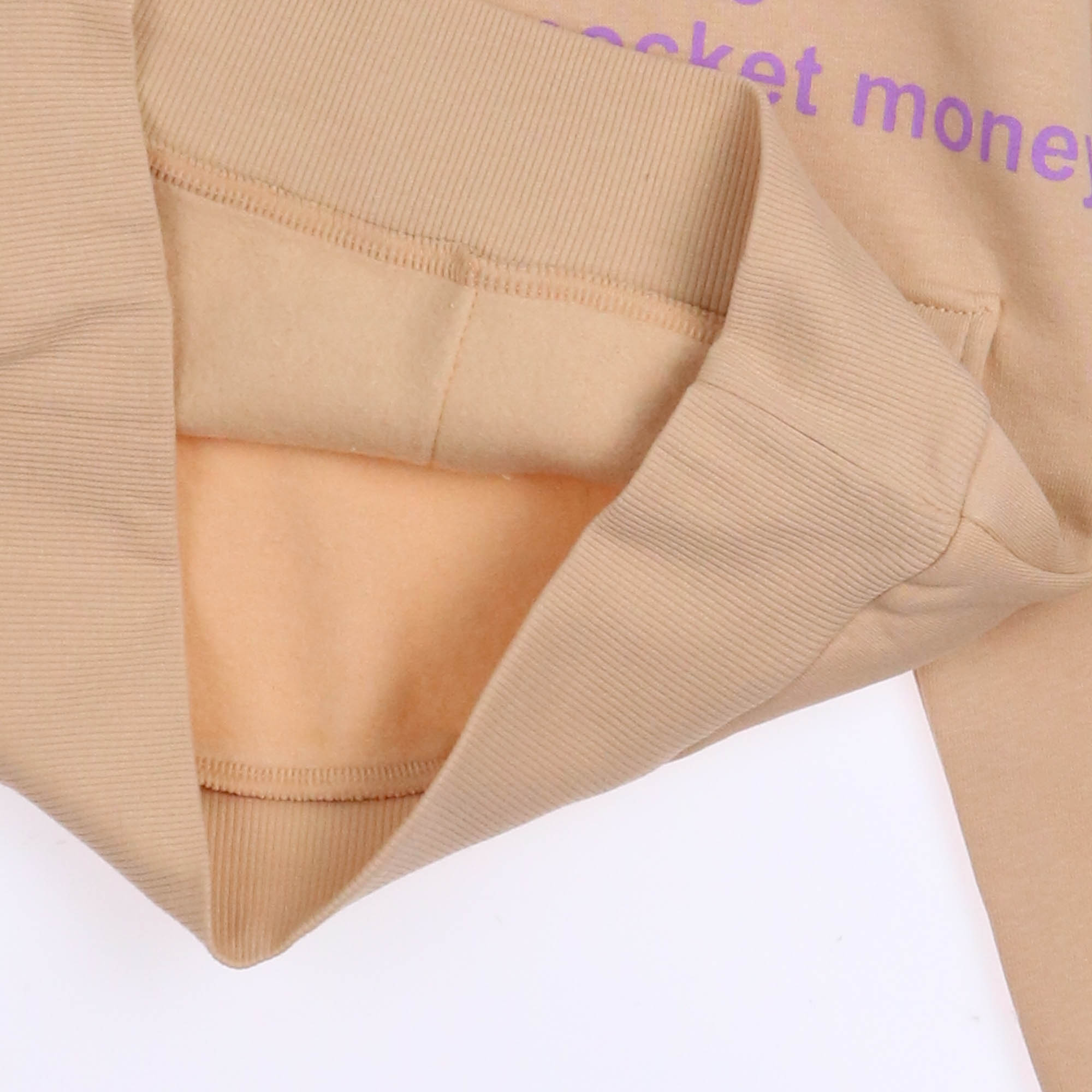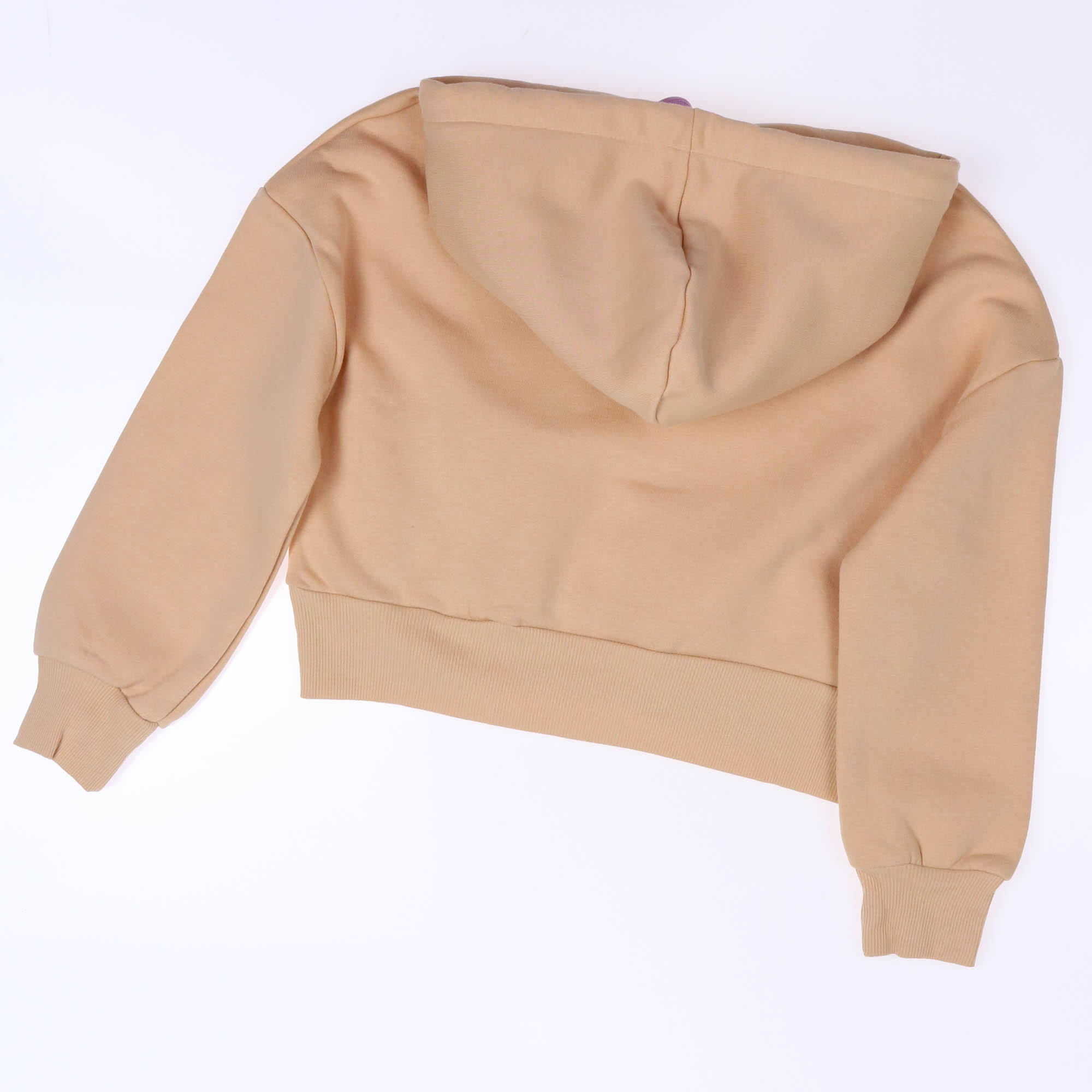 Худи  выполнено из трикотажа футер (начес). Модель умеренной длины, двойным капюшоном и накладным карманом на талии.