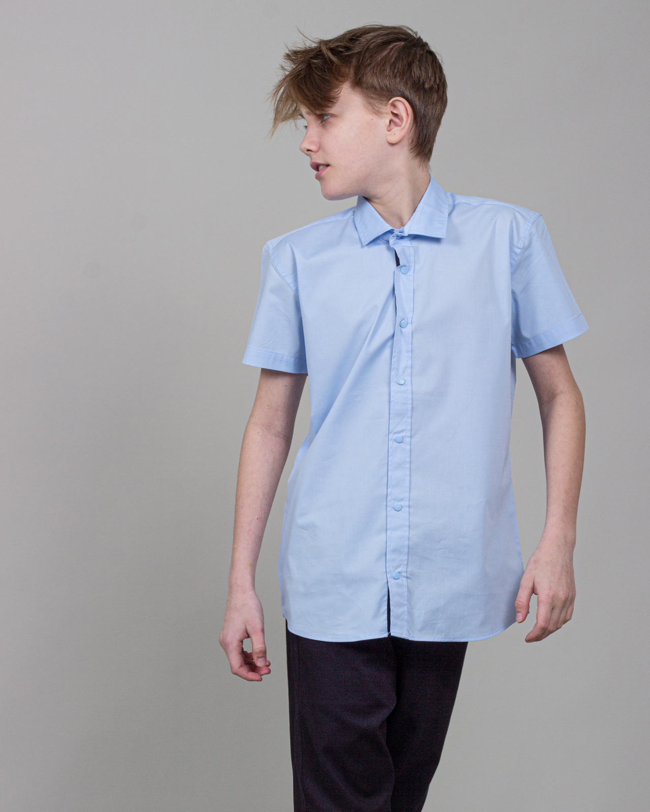 Рубашка Cegisa для мальчика оптом. Модель приталенного кроя с короткими рукавами, классическим отложным воротничком, застегивается на кнопки.