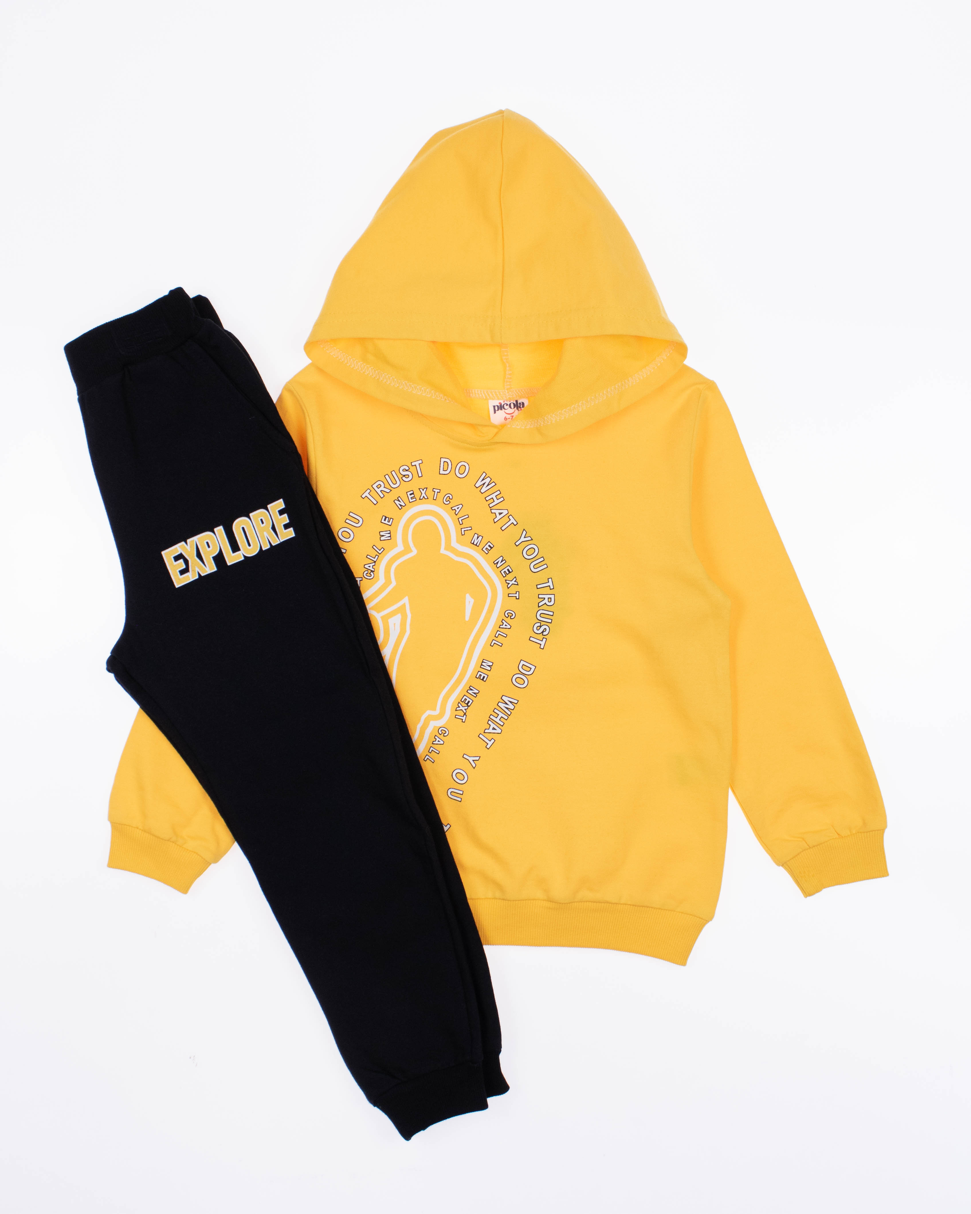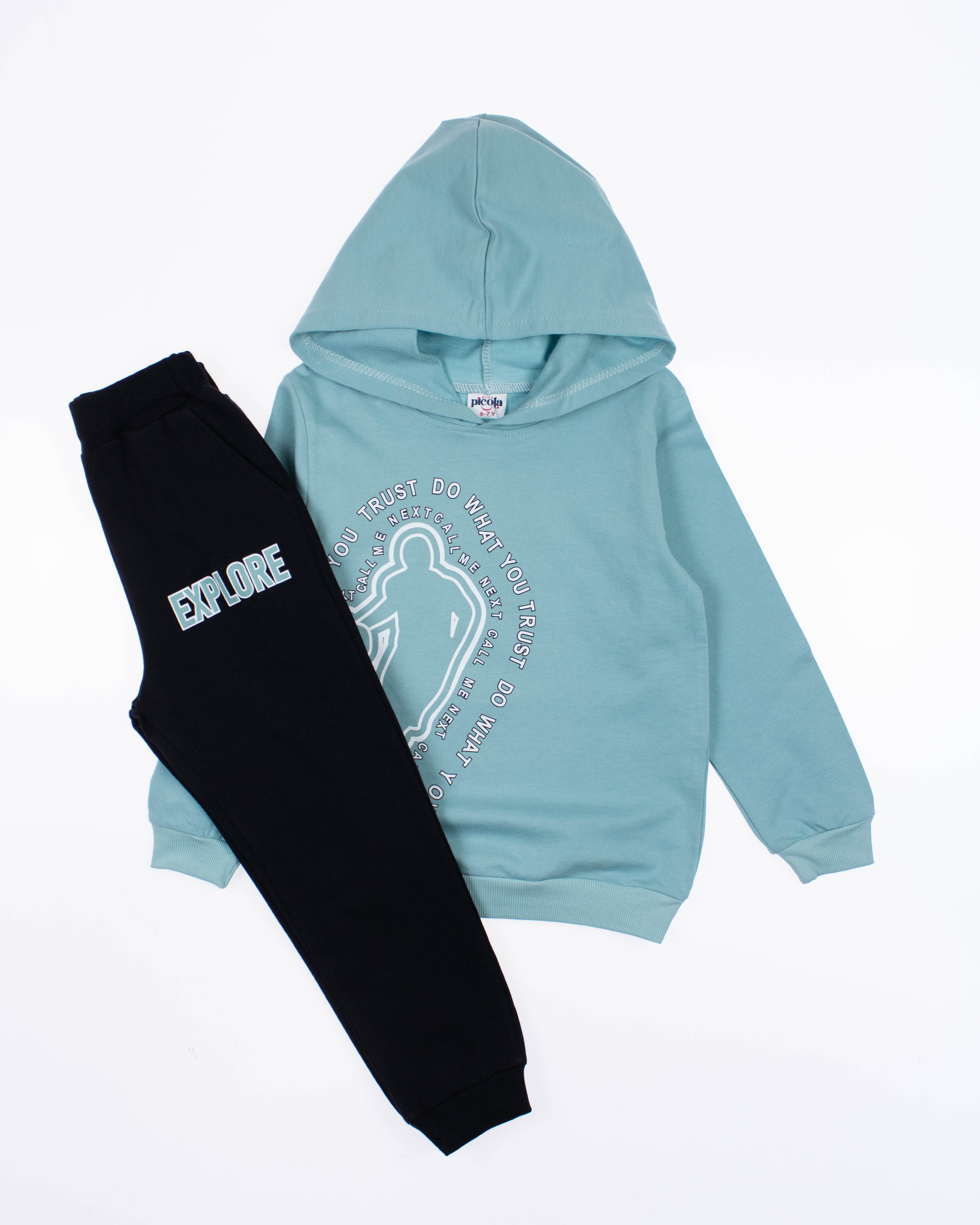 Универсальный костюм PICOLA BABY можно носить как домашнюю одежду  или  как одежду на каждый день. Брюки  имеют  эластичные манжеты на поясе и щиколотках и это очень хорошо, ведь они будут идеально сидеть по фигуре и не стеснять  движения ребенка. Трикотажные детский костюм безусловно должен быть удобными и для этого в моделях используются мягкие ткани которые еще и будут создавать приятные ощущения на коже. Это универсальная вещь которая должна быть в гардеробе. Костюм выполнен из трикотажа футер (петля).
