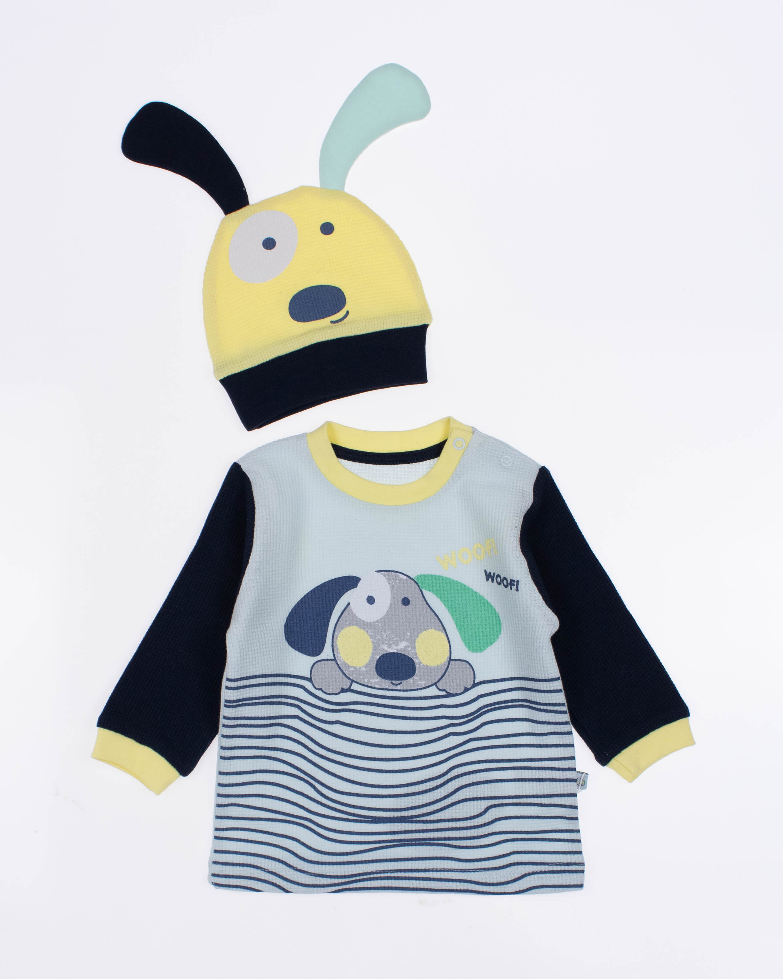 Функциональный, удобный и симпатичный комплект MYMIO BABY из 100% хлопка. Он включает в себя пять предметов: это кофточка с длинным рукавом, ползунки и шапочка. Каждую деталь можно надевать отдельно или комбинировать с другими вещами.