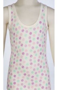 Лямочки мягко облегают плечи, фиксируют изделие в едином положении на протяжении дня, из-за чего одежда не задирается, не сползает, не перекручивается. Силуэт слегка прилегает к телу, из-за чего белье носится и полными, и худенькими девочками.. Постельный цвет маечки приятно смотрится, а принт на переднем полотне добавляет образу свежести, аккуратности и нежности. Детская одежда носится как ночнушка, нижнее белье или как белье для повседневной носки дома, в школу.
