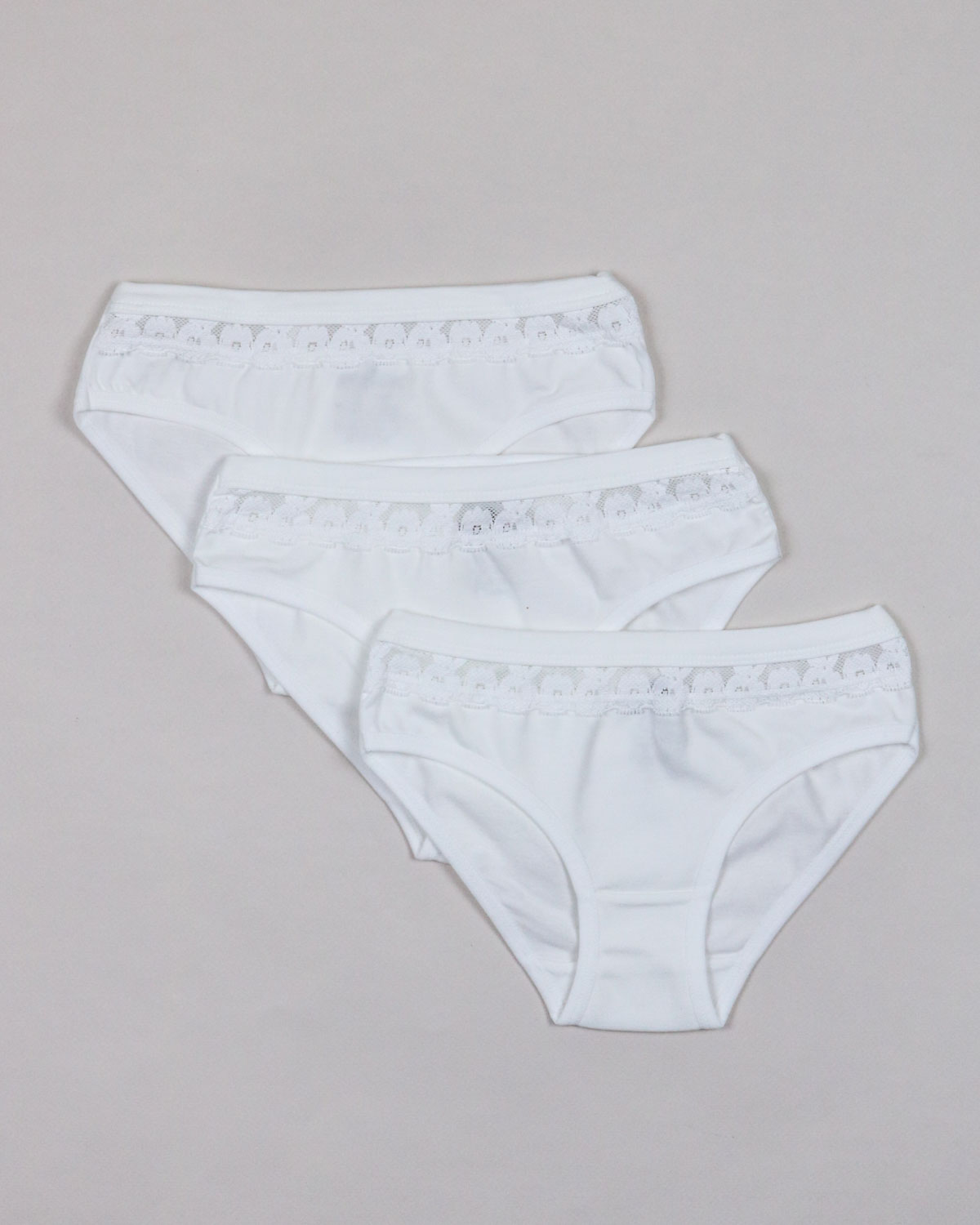 Трусы детские для девочек хлопковые, украшены узорчатым эластичным кружевом.Классическая модель с удобной посадкой, мягкие на ощупь, комфортные и безупречные в носке. Мягкая резинка не давит и не натирает кожу. Дышащая, хлопковая ткань гарантирует комфорт в течение дня.
