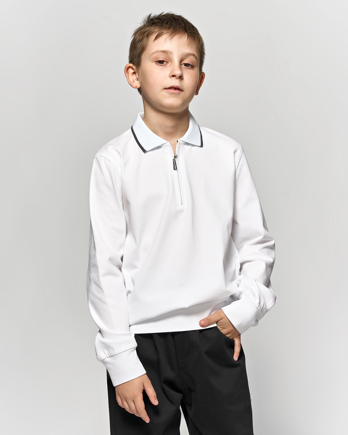 Поло Cegisa для мальчика оптом имеет прямой силуэт, застёжку- молния, отложной воротник. Идеально подойдет на каждый день и в качестве школьной формы. Поло не деформируется и не растягивается в процессе эксплуатации и после стирки, выполнено из трикотажа лакоста.