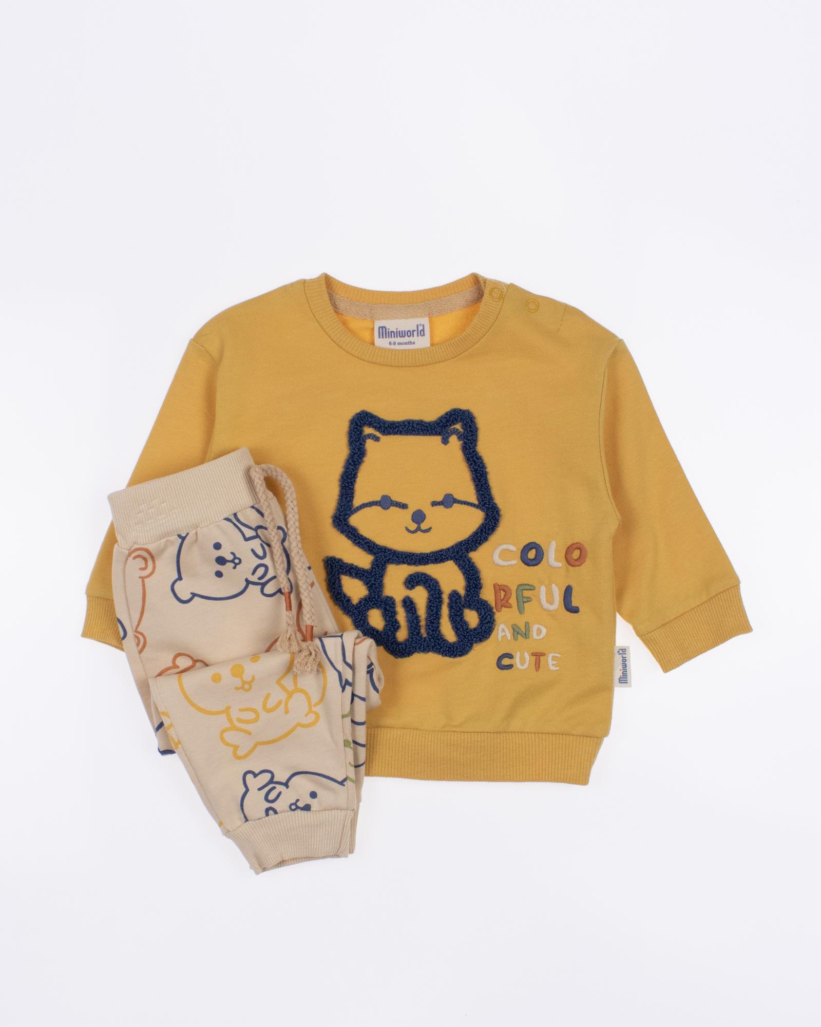 Мы предлагаем оптовые продажи детской одежды производства Турция. Хлопковый костюм MINIWORLD выполнен из хлопка с начесом, что гарантирует комфорт и безопасность для самых маленьких детей. Свитшот имеет удобную застежку-кнопки на плече, что облегчит процесс надевания и снятия одежды. Штанишки с мягкими манжетами на эластичном поясе идеально подходят для ношения с подгузником, обеспечивая свободу движений и комфорт. Детский милый принт на костюме поможет развить фантазию и воображение ребенка, делая его образ ярким и запоминающимся. Костюм MINIWORLD - отличный выбор для маленьких модников и их заботливых родителей. Не упустите возможность приобрести этот уникальный товар оптом по выгодной цене!